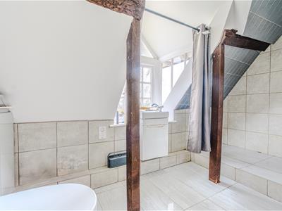 1.63m x 3.23m (5'4 x 10'7)Forming an irregular shape and is within the eaves with a charming traditional glazed dormer style window with a delightful outlook over the surrounding countryside, fitted with a low level wc with concealed cistern, wash hand basin with mixer tap and storage beneath, walk in shower with handheld attachment, tiled walls, tiled floor, extractor fan, heated towel rail.