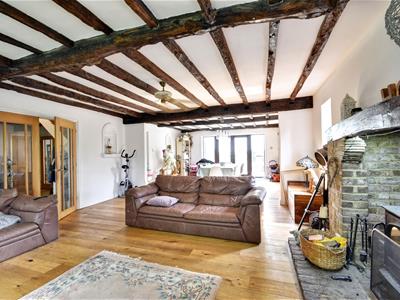 5.026 x 10.953 (16'5" x 35'11")Triple aspect, window to front, side and bifold doors to rear looking onto garden. Radiator under windows, hard wood flooring, open fireplace with log burner.