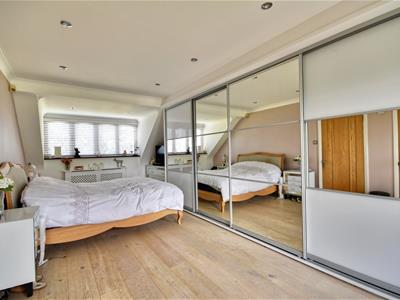 3.467 x 7.839 (11'4" x 25'8")Hard wood flooring, window to front with radiator below, glass French doors overlooking garden onto balcony. Large built in wardrobes across side wall, door leading to en-suite.
