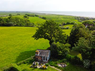 An electric gate opens to a hardstanding and parking for several cars. DOUBLE GARAGE WITH PLANNING PERMISSION to convert and extend to provide office space and additional covered car space. To the rear there is a patio leading to the lawn which is surrounded by mature planting and pathway transporting you to a detached STUDIO / SUMMER HOUSE providing the perfect spot for working, entertaining or just enjoying the incredible countryside and sea views.