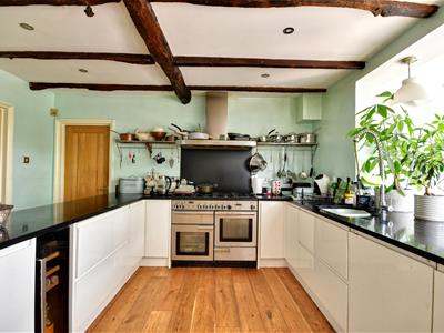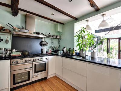 4.475 x 4.041 opening to 7.453 (14'8" x 13'3" openFitted with a range of modern unit. Gas cooker, built in microwave, fridge / freezer, wine cooler and dish washer. Open plan to an impressive orangery with bifold doors to rear overlooking garden. Hardwood flooring.