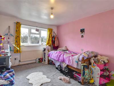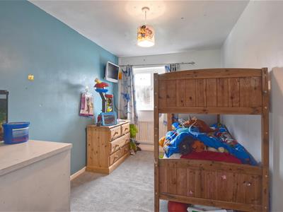 With stairs rising from the living room, window to the rear elevation, access to loft space, fitted storage cupboard and doors to: