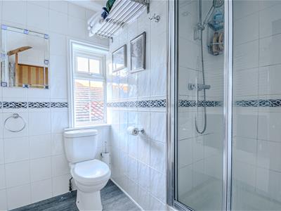 0.91m x 3.12m (3' x 10'3)Double glazed obscure window to rear, pedestal wash hand basin, shower cubicle with electric shower, part tiled walls, radiator, extractor fan.