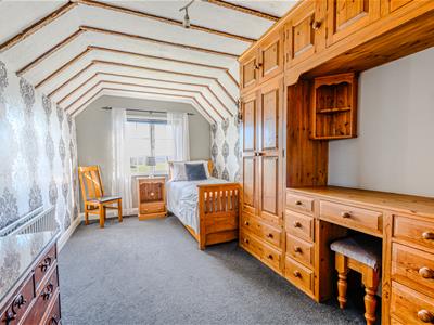 5.03m x 2.64m (16'6 x 8'8)Double glazed window to rear enjoying a stunning uninterrupted rolling countryside view, radiator, exposed ceiling timbers, extensive range of bespoke crafted bedroom furniture comprising wardrobes, overhead cupboards and dressing table.