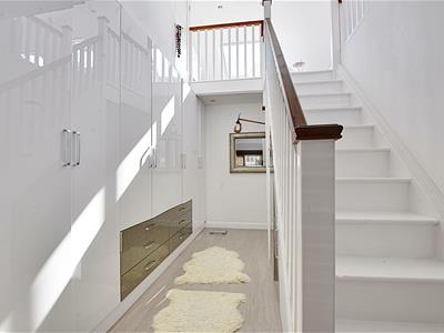 Cloaks cupboard, double radiator, additional fitted drawers and cupboard unit.
