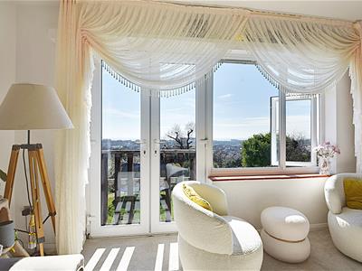 4.91 x 4.32 (16'1" x 14'2" )Window overlooks the southerly elevation with French doors, stunning views over Bexhill and sea views and all the way out towards the South Downs at Eastbourne, two double radiators.