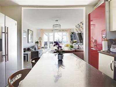 3.70 x 3.63m (12'1" x 11'10" )Beautiful fitted kitchen comprising a range of base and wall units with laminate straight edge worktops, one and a half bowl single drainer sink unit with mixer tap, integrated dishwasher and space for American style fridge/freezer, tiled splashbacks, integrated oven and grill with gas hob, extractor canopy and light, tiled splashbacks, area for table and chairs.