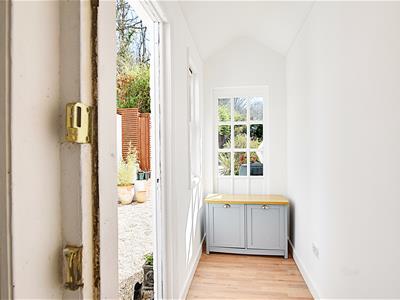 Windows to the front and side elevations, glass panelled entrance door leading onto the living room.