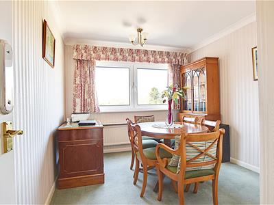 4.5m x 4.55m (14'9" x 14'11" )With double glazed windows overlooking the southerly aspect with stunning views across fields towards the sea, glass panelled door giving access onto the sun balcony, two radiators, serving hatch through to the kitchen.