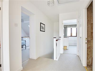 With access to loft space via loft hatch, large airing cupboard housing the hot water cylinder and slatted shelving, additional storage cupboard with hanging space and shelving.