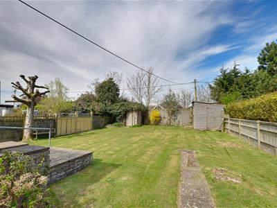 A good sized rear garden enjoying a westerly aspect, benefitting from the afternoon and evening sun, paved terrace abuts the property and is accessed from the dining area, area of level lawn, timber shed/store.