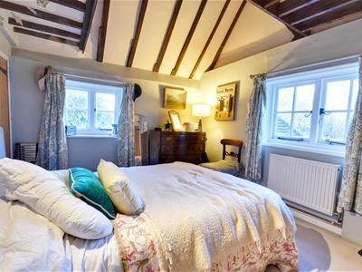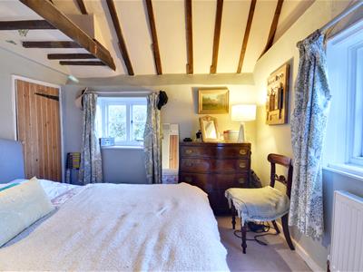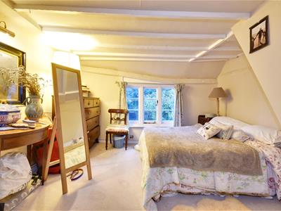 3.73m x 2.92m (12'2" x 9'6")Double aspect, built in storage cupboards, vaulted ceiling with characterful beams.