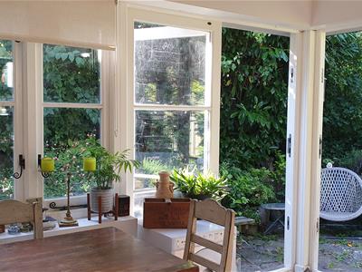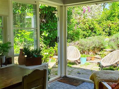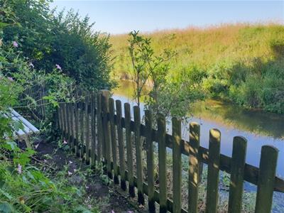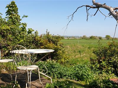 There is a summer house and decked terrace at the end of the garden with views over the River Brede and farmland beyond.