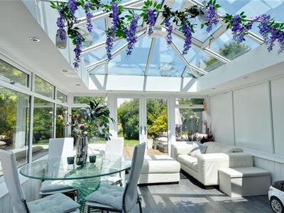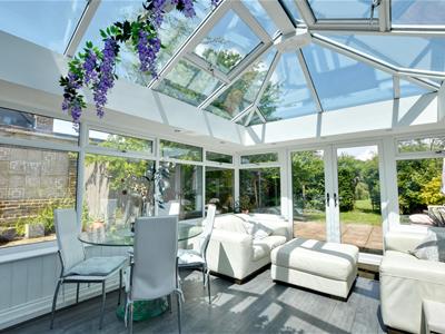 5.49m x 4.17m (18'0 x 13'8)An impressive open plan space with double doors leading onto the rear terrace and garden, roof lantern with openers.