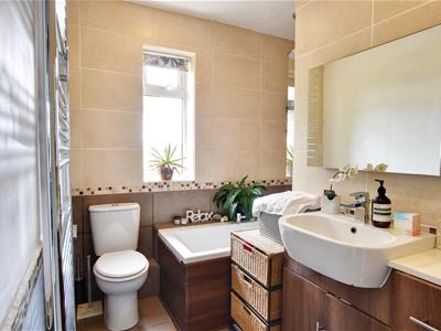 2.34m x 2.18m max (7'8 x 7'2 max)Window to the front, double ended shaped bath with centre mounted mixer tap and shower over, back to wall unit with semi recess wash hand basin, low level wc, generous wall and floor tiling, heated towel rail.