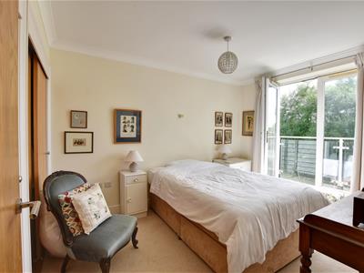 3.51m x 2.82m (11'6 x 9'3)Built-in wardrobes with sliding doors, double doors to the rear lead onto the balcony.