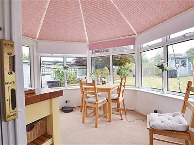 3.66m x 3.00m (12' x 9'10)UPVC double glazed construction overlooking the rear and side gardens with double radiator, door to side.