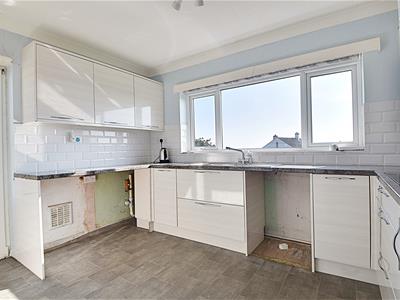 3.94m x 3.43m (12'11 x 11'3)Window to the front elevation, fitted kitchen comprising a range of base and wall units with laminate roll edge worktops, single drainer stainless steel sink unit with mixer tap, space and plumbing for washing machine, space and plumbing for dishwasher, space for fridge/freezer, integrated oven and grill, integrated microwave oven, induction hob, tiled splashback, built in larder/meter cupboards, obscured glass door to the side elevation.
