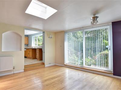 4.34m max x 3.96m (14'3 max x 13')High level window to the side elevation, glazed patio doors allowing access through to the garden, wooden flooring, radiator, roof lantern, archway leading through to: