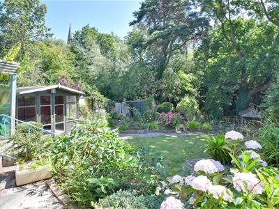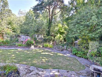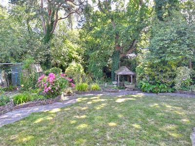 The established rear garden is a particular feature of the property with a paved patio area offering space for outside dining and entertaining leading to a gently sloping area of lawn bordered with a range of raised brick beds planted with a mixture of trees, mature shrubs and an array of seasonal flowers. A paved pathway proceeds down to the end of the garden where there is further seating area and an attractive shared pond.