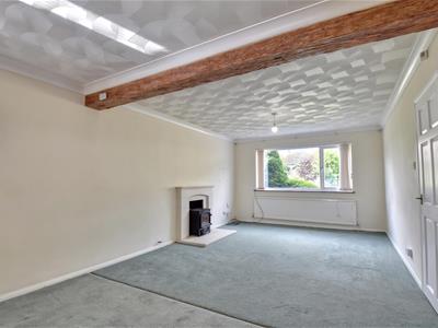 7.21m x 3.89m (23'8 x 12'9 )Double aspect with window to the front and side elevation, attractive feature fireplace with inset log burning stove, glazed serving hatch through to the kitchen/breakfast room, two radiators, glazed sliding door leading to: