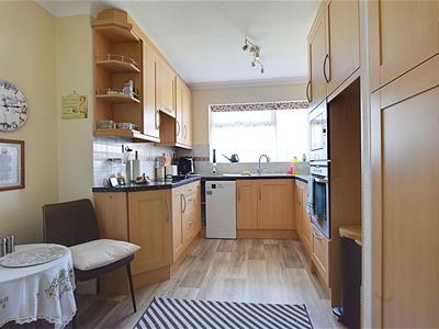 4.34m x 2.95m (14'3 x 9'8)Modern fitted kitchen with a range of matching wall and base level units, laminate straight edge worktop surfaces, integrated electric oven and microwave, four ring electric hob and extractor canopy above, one and a half bowl sink with drainer and mixer tap, space for free standing fridge and freezer, space and plumbing for dishwasher, tiled splashbacks, double glazed window to the front elevation overlooking the beautiful communal gardens.