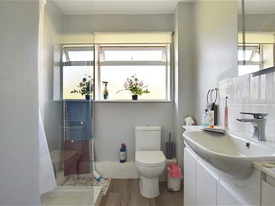 Modern suite comprising wc with low level flush, vanity unit with shaver point, lit-mirror, wash hand basin and mixer tap, power shower cubicle with chrome wall mounted shower controls, shower attachment and shower head, heated towel rail, obscured double glazed window to the front elevation.