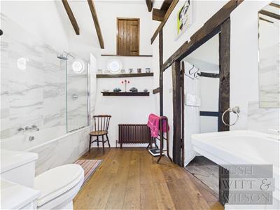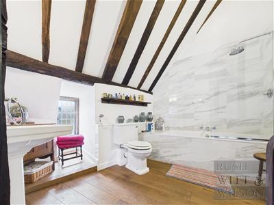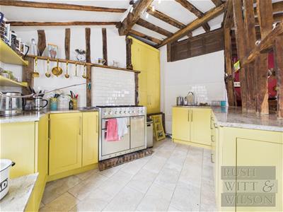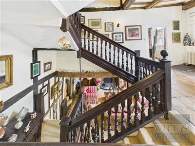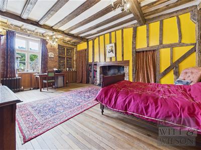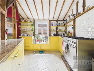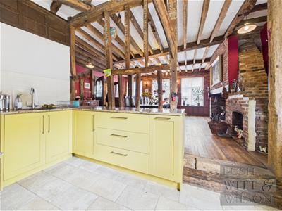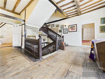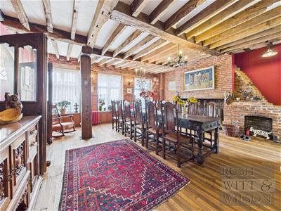 Steeped in history and full of soul, this remarkable Grade II-listed former inn sits proudly in the heart of Robertsbridge's picturesque High Street, offering over 3,700 sq ft of truly atmospheric living space spread across three floors — all beautifully restored and brimming with period charm. Behind its handsome façade lies a rich and layered interior: think grand reception rooms with exposed brick and ancient beams, lofty ceilings, roaring fireplaces, and a magnificent Jacobean staircase sweeping through the heart of the home. The kitchen brings a stylish modern twist, cleverly designed around original features, while the generous bedrooms, one with en-suite, span the upper floors with vaulted ceilings, exposed timbers and glorious views over the village rooftops. The cellar below tells its own story, with carved stone, niches, and an enchanting spiral staircase revealing the building’s 15th-century roots. Outside, the rear garden is a peaceful retreat — thoughtfully landscaped with mature planting, a lawn and patio, and gated access to a shared garage and parking beyond. Perfectly positioned within the High Weald Area of Outstanding Natural Beauty, with countryside walks, destination dining and heritage landmarks all close by, not to mention Robertsbridge station just a few minutes' stroll away with direct links to London — this is an extraordinary home offering history, lifestyle and character in abundance. A rare gem not to be missed.