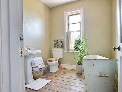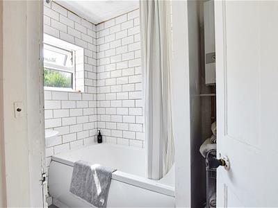 Suite comprising panelled bath with hand shower attachment, pedestal wash hand basin, wall mounted gas central heating and domestic hot water boiler. NOTE: The downstairs bathroom could become part of the kitchen to create a spacious kitchen/diner, offering a lovely light airy kitchen diner and retaining the bathroom upstairs if preferred.