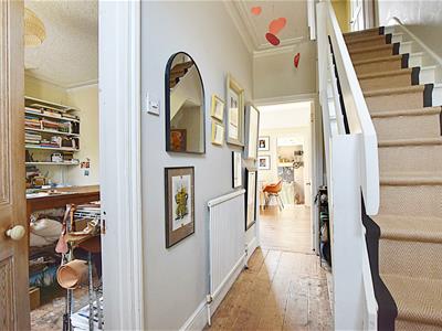 A spacious semi-detached two/three bedroom character house built in 1919, retaining many of its original features throughout. The accommodation comprises living room, dining room, modern fitted kitchen, downstairs cloakroom and bathroom. On the second floor there are two/three bedrooms, the third bedroom currently being used as a further bathroom which could be easily converted back. Other benefits include gas central heating system, private front and southerly rear garden, off road parking and garage. Viewing is highly recommended by Rush Witt & Wilson, Sole Agents.