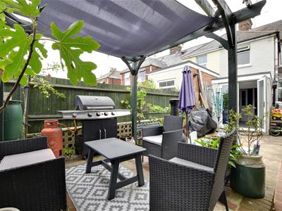 Enjoys a southerly aspect incorporating path and paved terrace leading to a further raised pergola covered seating area, timber garden store, pedestrian access to the rear.