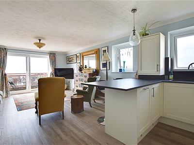 A stunning second floor two bedroom purpose built flat with beautiful commanding sea views and across Bexhill town. The accommodation provides an open plan fitted kitchen with breakfast bar and living area opening onto a south facing sun balcony, modern bathroom with w/c and additional separate cloakroom. Other benefits include gas fired central heating system, double glazed windows and doors, communal gardens and a garage en-bloc. . The property is presented to an exceptional standard by the current vendors. Outside the property can be found communal gardens and comes with share of freehold and no chain. Viewing comes highly recommended by Rush Witt & Wilson, sole agents.