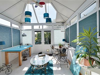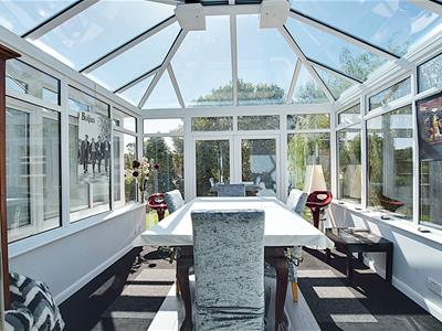 3.78m x 4.29m (12'5 x 14'1)Overlooking the southerly elevation with stunning views of the rear garden, French doors, additional door to the side, glass roof.