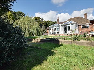 A very special detached bungalow with three reception rooms, situated in 0.24 acres of gardens (TBV) with double and single garage/workshop with large storage area above. Fitted with personal side door, two workbenches with insulated roller shutter door for security. The driveway offers ample off road parking for several cars. It’s situated in a desirable & convenient area close to primary & secondary schools, local shops, golf course & good transport links. The large, rear, south facing, sunny garden needs a particular mention. Mainly laid to lawn & featuring a children's “Wendy” house, summer house, a brick storage shed and a lean-to shed. It features a sunken flower bed along with an area of patio & brick built BBQ. A perfect spot for family get togethers. The accommodation offers a versatile layout. The bright south facing living room measures an impressive 24’ x 12’4, leading to two conservatories for additional reception space. The sunny, beautiful vaulted ceiling kitchen has views of the garden, utility room with ample STORAGE space. There are two well proportioned bedrooms. One with good sized built in wardrobe, the other with en-suite facilities. The slightly glamorous family bathroom, has bath with rain head shower & curved glass screen and bidet. There is also a good sized ADDITIONAL LOFT ROOM, which could be used as an occasional bedroom. Occupying a QUIET LOCATION, this unusual property would make a PERFECT FAMILY HOME. CHAIN FREE.
