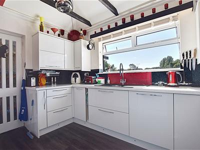 4.75m x 1.55m (15'7 x 5'1)Door to front, door to side, windows overlooking the rear garden, laminate worktop, space and plumbing for washing machine, space for tumble dryer.