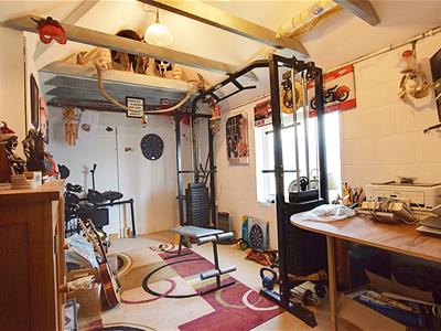 5.74m x 2.51m (18'10 x 8'3)Obscure glass window to the side elevation, opening doors built in storage cupboard, vaulted ceiling, this is currently being used as a gym.
