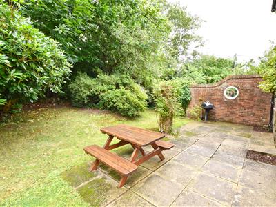 Enjoying seclusion and gently sloping lawned gardens with a terrace located to side accessed from the dining room, substantial timber workshop/log store to the side with gate giving return access to the front.