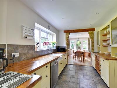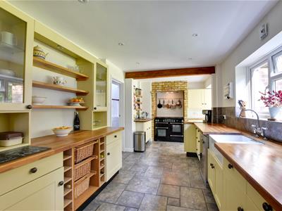 5.49m x 3.91m max (18' x 12'10 max)Fitted with a range of traditional style cupboard/drawer base units and matching wall mounted cabinets, complimenting work surface with inset double sink, matching dresser unit with cupboards, basket storage, display cabinets, space and point for Range, windows and doors to the rear.