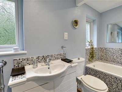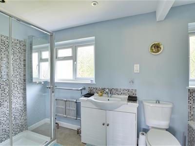 3.71m x 1.63m (12'2 x 5'4 )Fitted with a white suite comprising panelled bath, separate shower cubicle, back to wall unit with wash basin, wc, two windows to the rear.