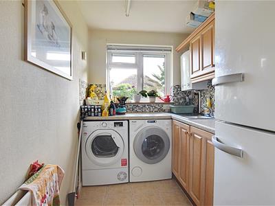 3.00m x 1.78m (9'10 x 5'10 )With matching wall and base level units, laminate straight edge worktop surfaces, sink with drainer and mixer tap, space and plumbing for washing machine and tumble dryer, space for freestanding American style fridge and freezer, tiled splashbacks, radiator, double glazed window to the rear elevation, gas central heating boiler.