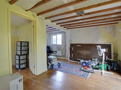 5.77m x 3.84m (18'11 x 12'7 )With dual aspect and double glazed windows to the front and side elevation, double radiator with additional single radiator, feature fireplace with exposed brick surround, exposed wood beams, leading to: