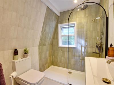 2.01m x 1.75m (6'7 x 5'9)Walk in shower, contemporary style suspended wash hand basin, low level wc, heated towel rail, tiled walls, tiled floor, window to the rear.