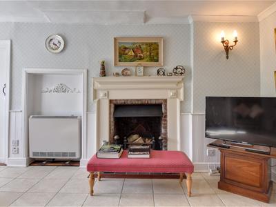 4.62m x 4.27m (15'2 x 14')Window to the rear elevation enjoying pleasant outlook over the rear garden, attractive feature fireplace with wood surround and quarry tiled hearth, electric storage heater, low level fitted cupboard with display shelving above, tiled flooring, half wood panelled walls with shelf over, door to the rear elevation allowing access out to the garden.