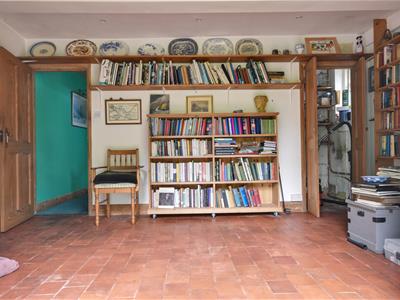 4.72m x 2.82m (15'6 x 9'3)Double doors onto garden, book shelving, cupboard.