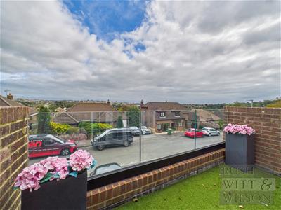 ** GUIDE PRICE £350,000 - £375,000 ** A truly beautiful and immaculately presented three-bedroom semi-detached townhouse, showcasing stylish décor throughout and enjoying breath-taking panoramic views across Hastings towards the English Channel. Perfectly positioned in a popular residential area within easy reach of Alexandra Park, excellent local schools and convenient bus routes, this home offers a wonderful balance of comfort, practicality and elegance. The property benefits from off-road parking, an integral garage (currently divided to provide a study and storage room), modern double-glazed windows and gas central heating. The ground floor comprises a welcoming entrance hall, integral garage, a modern shower room with a spacious quadruple shower cubicle and a well-equipped utility room. On the first floor, the south-east facing living room is filled with natural light, with French doors opening onto a balcony that perfectly frames the stunning views. The open-plan kitchen and dining area is ideal for entertaining, with doors that seamlessly connect the living space to the rear garden. Outside, the beautifully landscaped tiered garden is designed for easy maintenance, combining well-planned planting with paved seating areas, creating an inviting and tranquil space to relax or entertain without the need for extensive upkeep. The top floor offers three well-proportioned bedrooms, two with built-in wardrobes, and a modern family bathroom. With its exceptional presentation, low-maintenance outdoor spaces, and unbeatable views, this is a home that truly stands out.