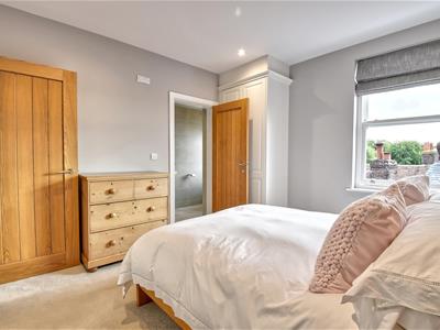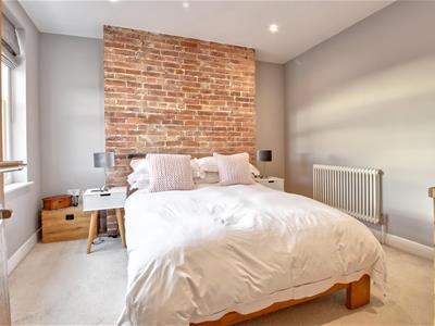 3.71m x 3.58m max (12'2 x 11'9 max)Sash window to the side elevation enjoying impressive roof tops views across to the town and open countryside beyond, exposed brick chimney breast, fitted wardrobe, radiator, recessed ceiling spot lights an oak door to: