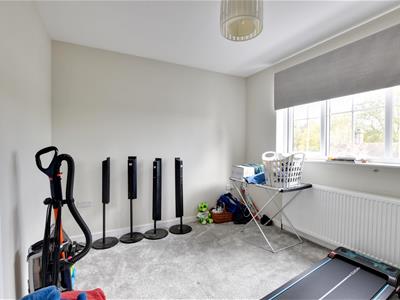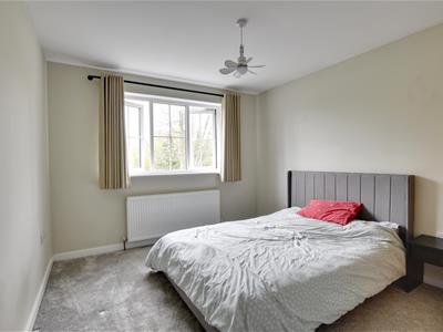 2.29m x 1.96m (7'6 x 6'5)Window to front, white suite comprising a deep double ended panelled bath with centre mounted tap, contemporary wash hand basin and low level wc, heated towel rail, shelved linen cupboard.