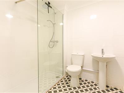 Newly appointed and fitted with a low level w.c, pedestal wash hand basin with mixer tap, large walk-in shower with fixed glass screen shower with handheld attachment and fixed rainfall shower head, extractor, chrome heated towel rail.