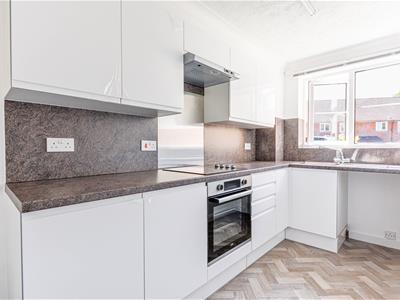 3.68m x 1.65m (12'1 x 5'5)Newly appointed with matching high gloss wall and base mounted units, works surface with complementing surround, single bowl sink with drainer and mixer tap, integral oven and hob with cooker hood over, space for washing machine and fridge/freezer, double glazed window to front aspect.