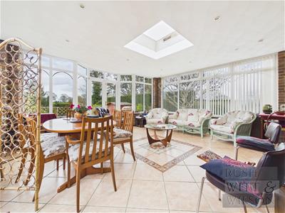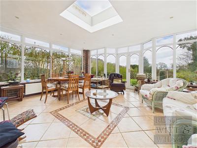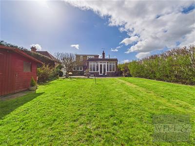 A truly special detached chalet bungalow, approached via a long private driveway, situated on a 0.30 acre plot, comprising, entrance porch, large entrance hallway, fitted kitchen leading to the side lean to, large living room, stunning orangery with doors and windows overlooking and providing access onto the rear garden, two double bedrooms to the ground floor, family bath/shower room, inner hallway with stairs to the first floor and leading to the downstairs study room/bedroom five, two additional double bedrooms to the first floor, with the main benefitting from ensuite and walk in wardrobe. Other internal benefits include electric heating throughout and double-glazed windows and doors.